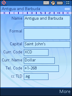 The fields and controls on the view are mostly standard UIQ controls, and you operate on them in the normal way to edit values, tap buttons, etc. Note however that no "stand-in" controls are used for text fields, and it's not possible to navigate between the fields only with the help of the keyboard. Read more about the reasons and the reasoning behind this in chapter Keyboard-Only Operation.