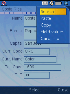 The card view has a relatively high number of commands, nearly all of them contained in nested menus. It takes three taps to issue one of those commands, and some "mental work" to locate each of them in the menu hierarchy. If you need a command repeatedly, which probably happens quite often, this is far from ideal.